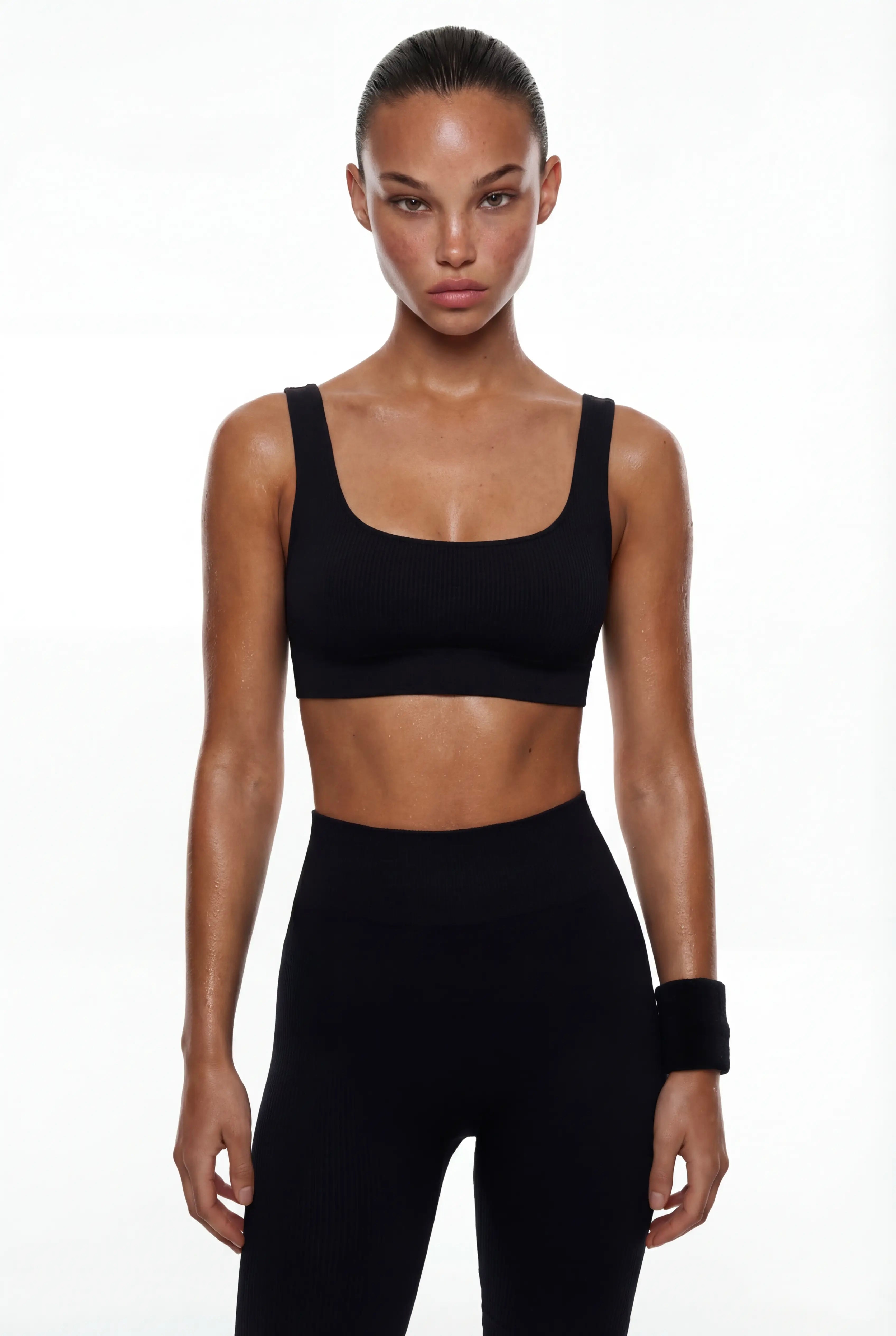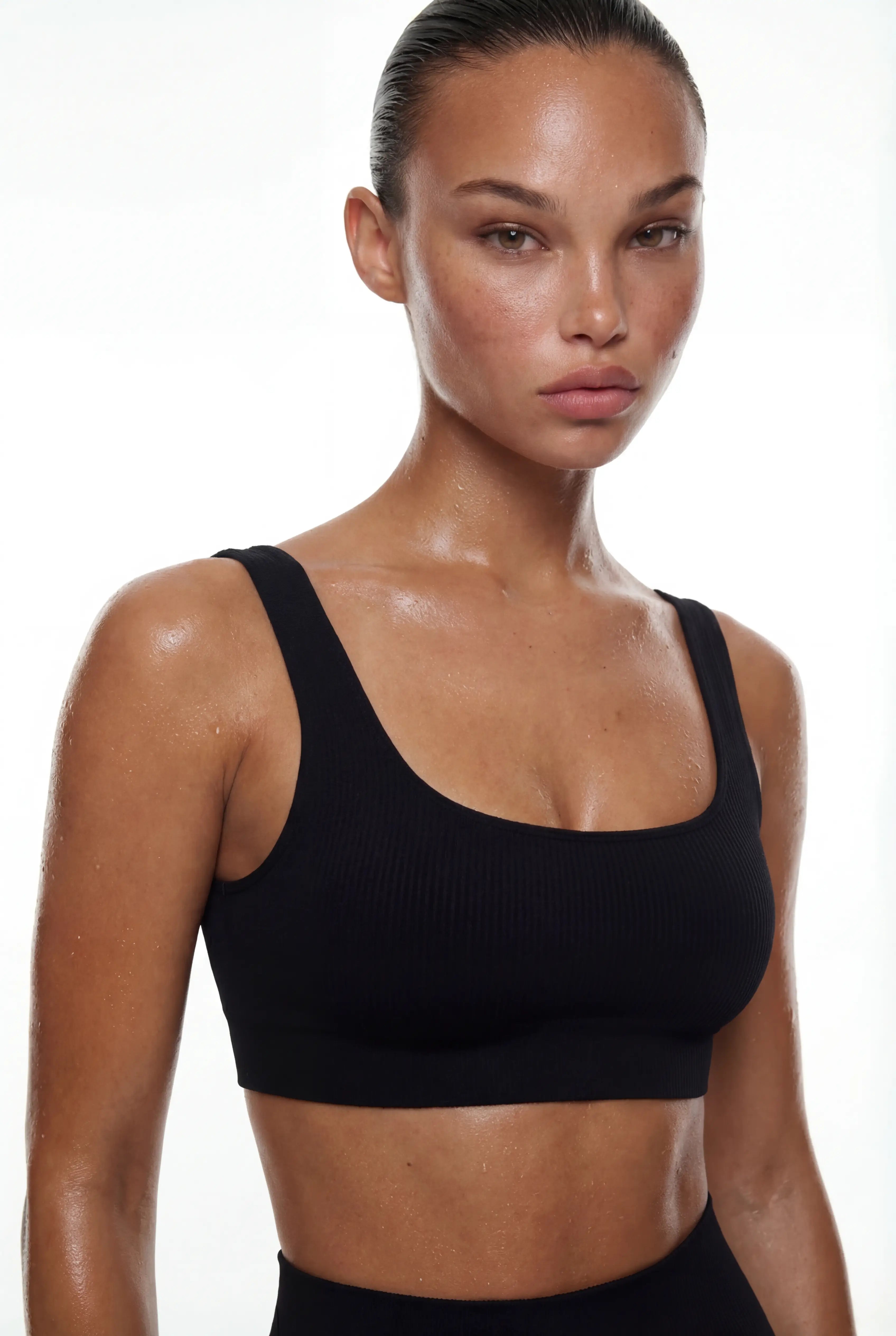 Топ в рубчик на широких бретельках виготовлений із м'якої мікрофибри.