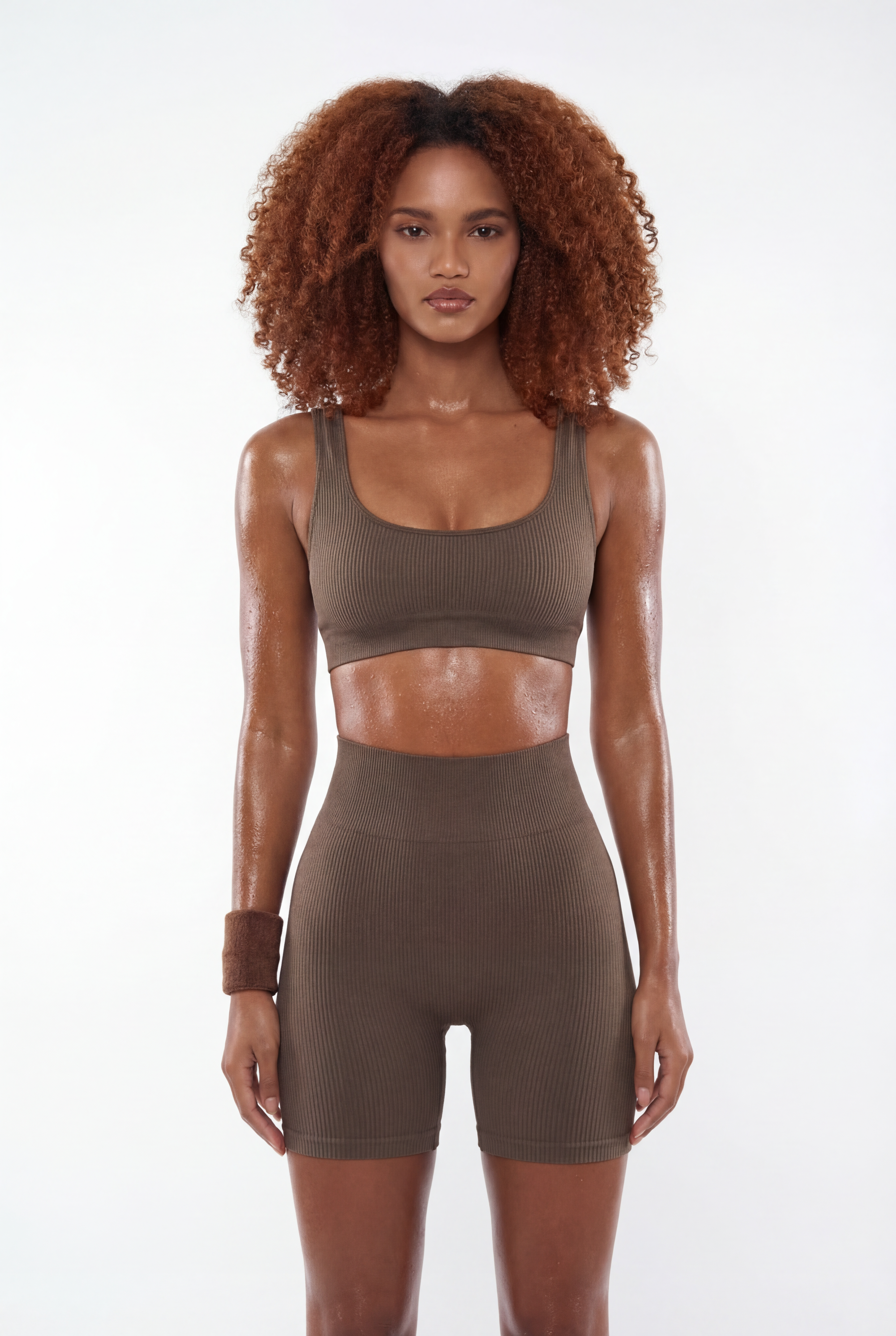 Топ в рубчик на широких бретелях шоколад